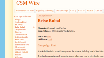 Information CSM Wire Election Coverage Brisc Rubal’s page on CSM Wire We have a ringer running for CSM this year. https://t.co/vOpU1pvBPy #CSM13 #tweetfleet — Noizy (@noizygamer) March 21, 2018